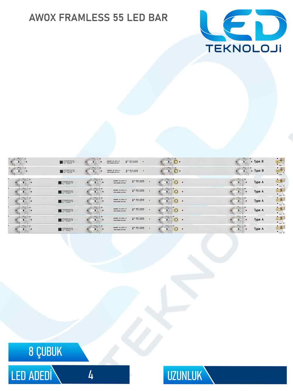 Botech 55BSE7501 8 Parça 55 inc Tv Led Bar Özellikleri