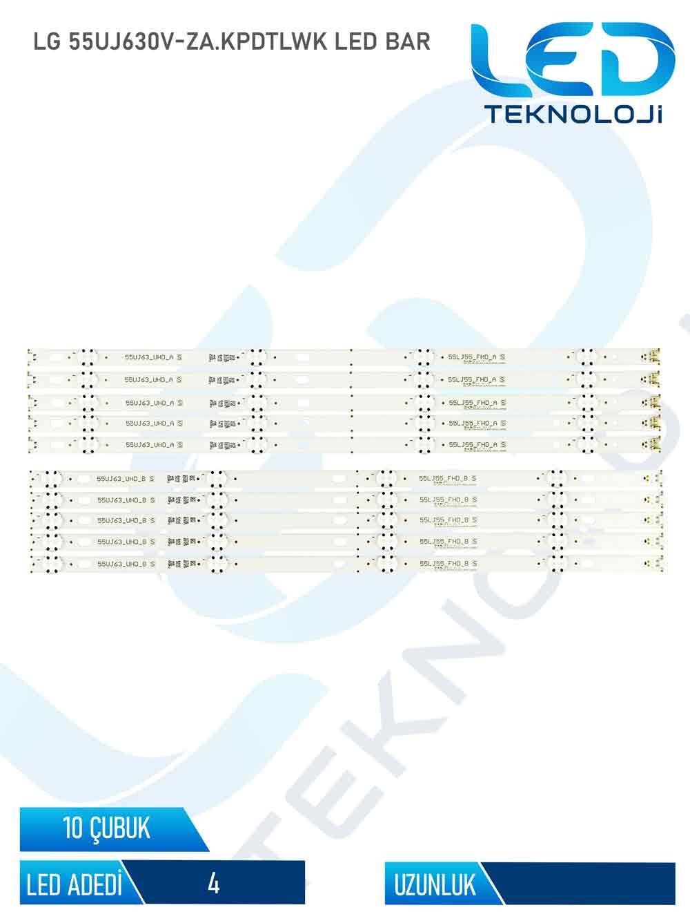 TOPLAM 10 PARÇADAN OLUŞAN, SIFIR VE ÜST SEGMENT KALİTEDE BİR ÜRÜNDÜR. ORİJİNAL KORE MENŞEİ LENSLER VE LED ÇİPLER KULLANILMIŞTIR. Ürün set halinde gönderilir ve görseller bire bir ürüne aittir. Diğer LG marka 55 inc led barlarımıza da göz atabilirsiniz. Tamamen yeni olup 1. sınıf kalite standartlarında üretilmiştir. Montaj işlemi teknik bilgi, deneyim ve uygun ekipman gerektirdiğinden profesyonel kişiler tarafından uygulanması önerilir. Tüm ürünlerimiz fabrikasyon kaynaklı arızalara karşı 6 ay birebir değişim garantisi altındadır.