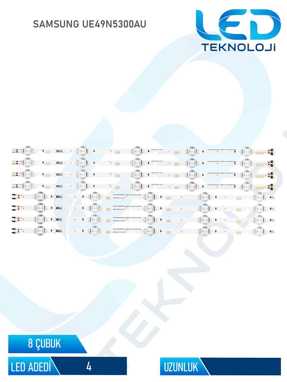 TOPLAM 8 PARÇADAN OLUŞAN, SIFIR VE ÜST SEGMENT KALİTEDE BİR ÜRÜNDÜR. ORİJİNAL KORE MENŞEİ LENSLER VE LED ÇİPLER KULLANILMIŞTIR. Ürün set halinde gönderilir ve görseller bire bir ürüne aittir. Tamamen yeni olup 1. sınıf kalite standartlarında üretilmiştir. Samsung 49 inç Led Bar Setini sitemizde bakabilirsiniz Montaj işlemi teknik bilgi, deneyim ve uygun ekipman gerektirdiğinden profesyonel kişiler tarafından uygulanması önerilir. Tüm ürünlerimiz fabrikasyon kaynaklı arızalara karşı 6 ay birebir değişim garantisi altındadır.